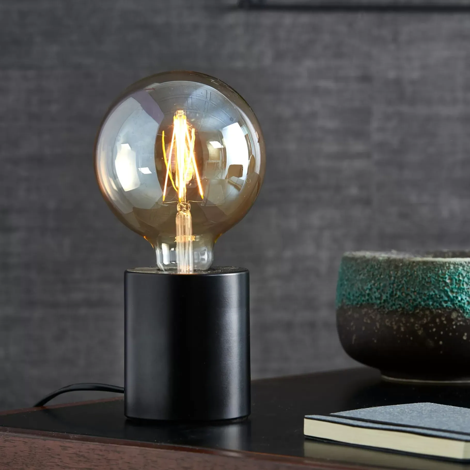 CASA Cilinder Lampara De Mesa Negro