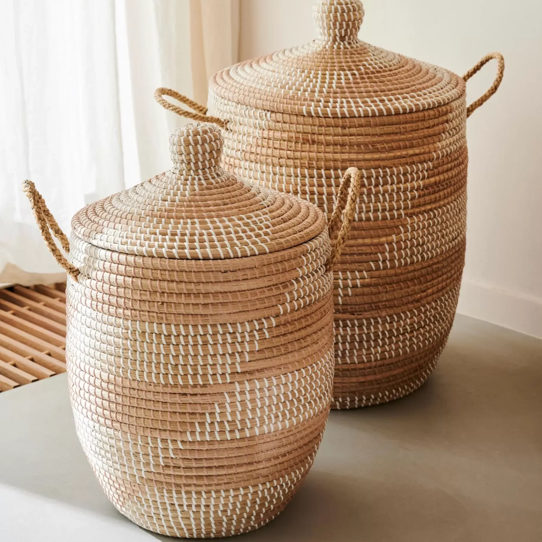 CASA Yasmine Cesta De Lujo Con Tapa Blanco, Natural